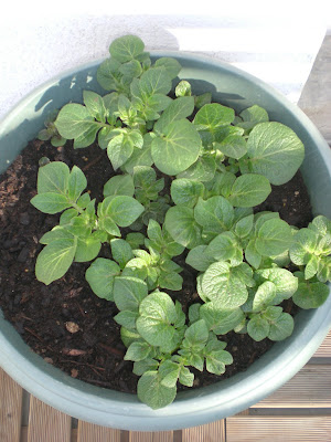 Si vous regardez la photo de la semaine dernière (cf Plantation des pommes de terre) et celle de cette semaine, vous verrez que mes pommes de terre sont en pleines formes et se sentent très bien avec le printemps qui arrive.
